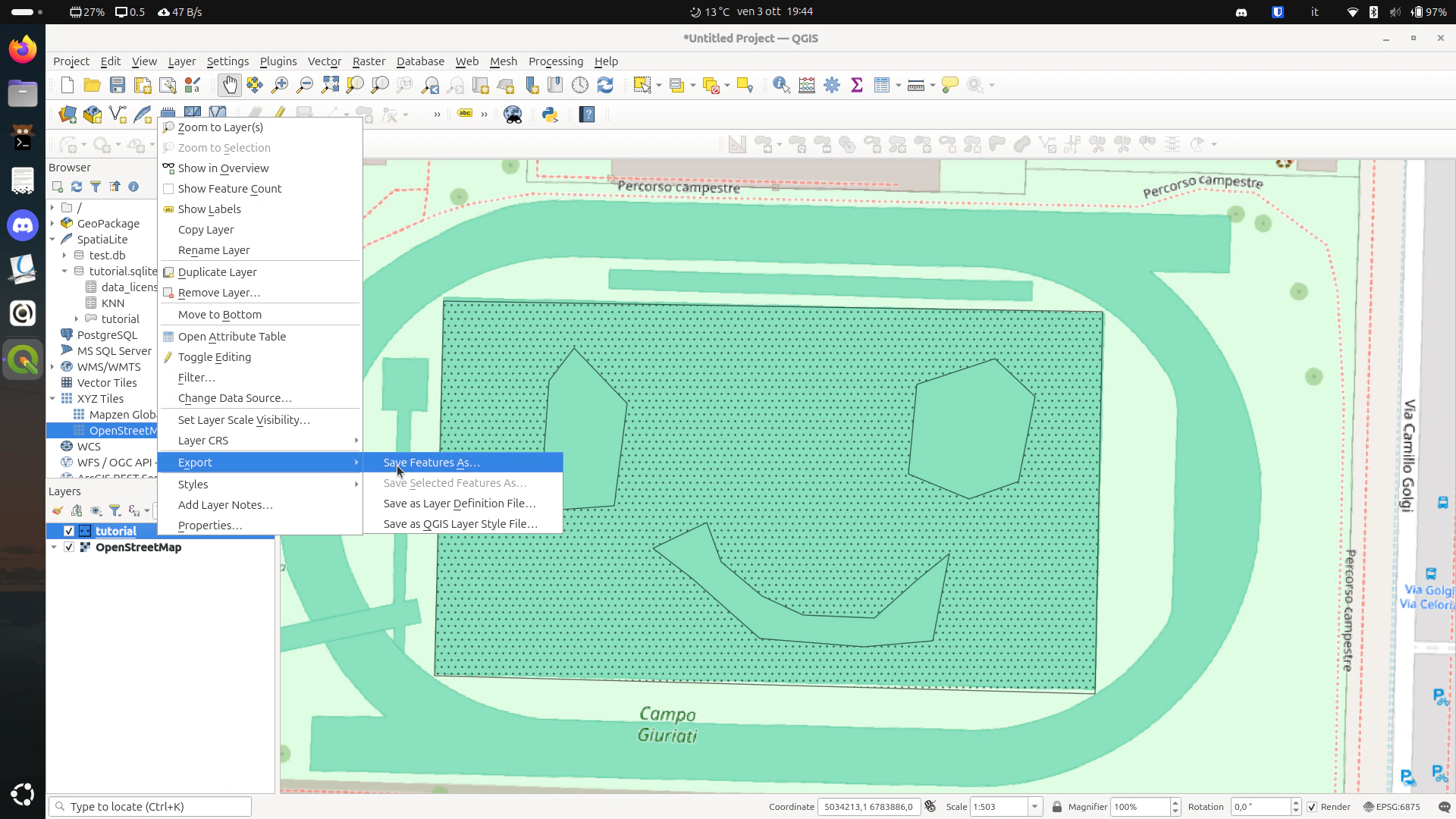 Right click on the object layer and go to “Export” -> “Save Feature As”