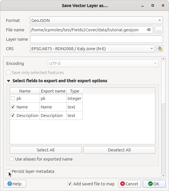 Tutorial on how to export polygons in QGIS into geojson for later use in Fields2Cover