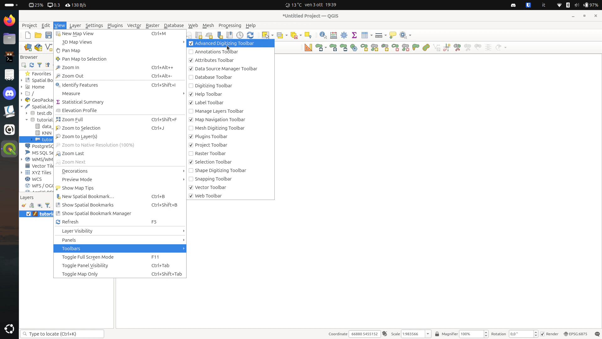 In the layer panel, select the project layer created previously and then press on the pencil icon in the toolbar
